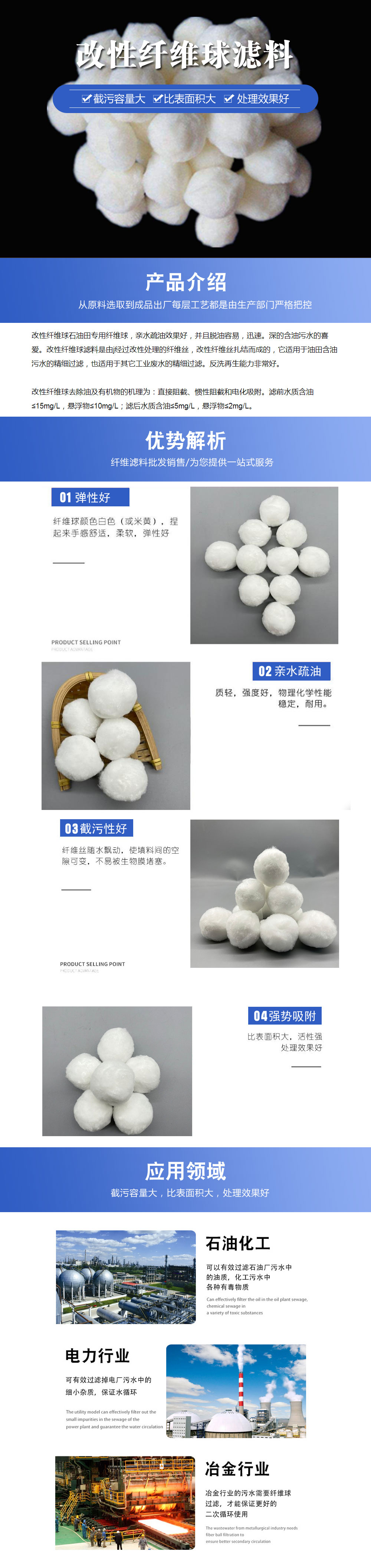 改性纖維球濾料選用優(yōu)質(zhì)進口改性纖維絲以扎結(jié)而成。原纖維絲經(jīng)過預(yù)熱→蒸汽牽伸→水洗→改性處理→烘干→ 熱定形→卷曲→分絲→扎結(jié)→剪斷→包裝等工藝加工而成。改性纖維球濾料單絲直徑可達幾十微米,屬于微米級過濾材料(砂濾器屬于毫米級),纖維絲的直徑為um級,具有強大的比表面積,對水中的顆粒的截留和吸附能力有極